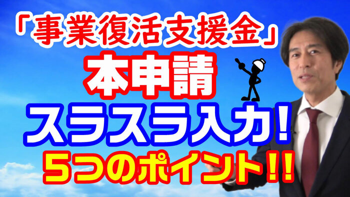 2022年04月21日(木) おしらせ 「動画」をアップしました。事業復活支援金の本申請入力がスラスラできる5つのポイント! YouTubeが開きます。 https://youtu.be/_FI-kwcpAx8 事業復活支援金の本申請入力がスラスラできる5つのポイント!