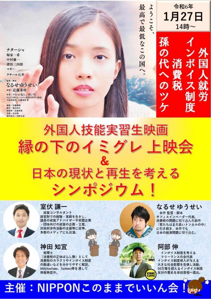 総務省の元官僚で現政策コンサルタントの室伏謙一氏、映画監督のなるせゆうせい氏、STOP!インボイスの阿部伸氏も登壇し、100人を超える参加者と共に盛大なイベントになりました。