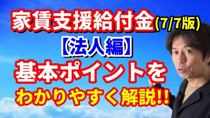 2020年07月12日(日) おしらせ 「動画」をアップしました。家賃支援給付金(法人編)社宅は?駐車場は?倉庫は?必要書類は?申請はいつから?条件と申請方法をわかりやすく解説!7月7日版 YouTubeが開きます。 https://youtu.be/cvQrUm9p3Yc 家賃支援給付金(法人編)社宅は?駐車場は?倉庫は?必要書類は?申請はいつから?条件と申請方法をわかりやすく解説!7月7日版